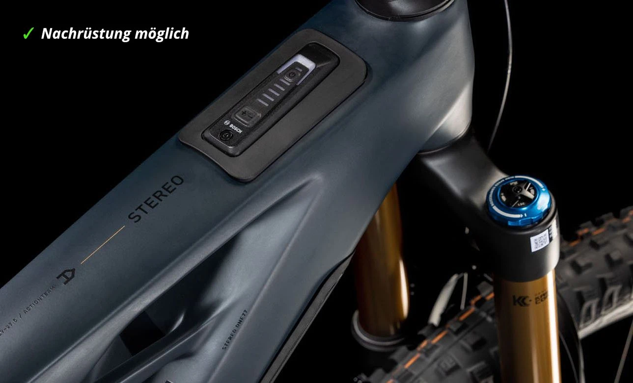 Avec l’adaptateur d’affichage Cube, vous pouvez installer l’écran Bosch Kiox 400C sur votre vélo électrique Cube. Pour cela, le tube supérieur du vélo doit présenter une ouverture de taille adéquate. L’installation ultérieure est uniquement possible sur les vélos Cube équipés du Bosch System Controller ainsi que de l’adaptateur de cadre Bosch. Cela inclut les modèles Cube Stereo Hybrid One44 HPC 2025 et Cube Stereo Hybrid One77 HPC 2025.