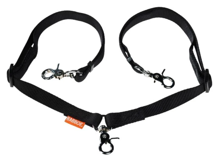 Fabricant: Babboe Article: Laisse double Babboe pour chiens Contenu de la livraison: 1x harnais pour chien Babboe Coloris: noir Compatibilité: Babboe vélo cargo électrique Dog, Dog-E, Go, Go Mountain, Go-E Référence du fabricant: HWWX-0800 Materiau: Nylon Type de fixation: Fixation à droite et à gauche dans la Caisse de transport. Longueur: les deux côtés sont réglables en longueur de 50 à 80 cm Poids de l’article: 150 g EAN: 8720246367423