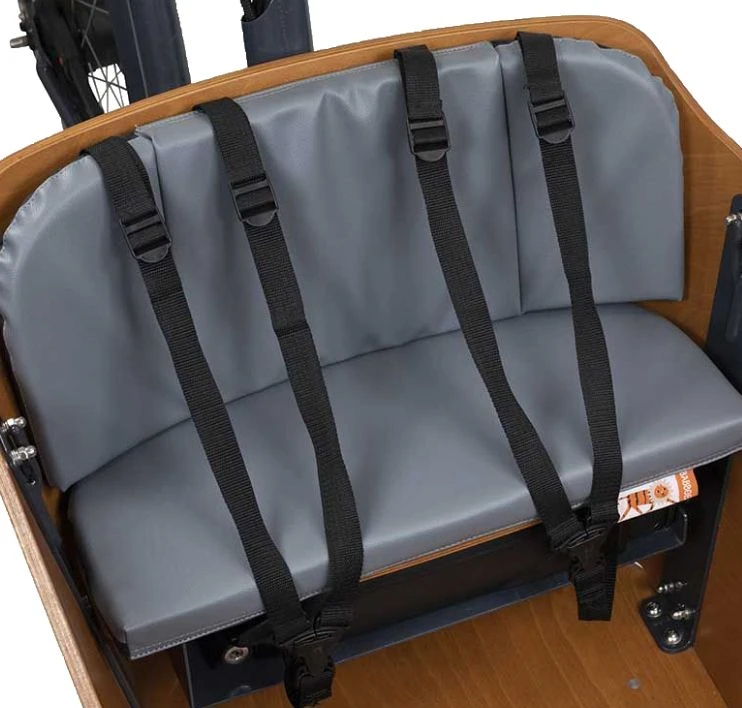 Avec le set de coussins Babboe Multi, vous créez un siège confortable dans la caisse de transport de votre vélo cargo électrique Babboe. Jusqu’à deux enfants de 18 mois et plus peuvent ainsi être transportés en toute décontraction. Le coussin se compose de deux parties, un coussin de dossier et un coussin d’assise, qui sont reliés entre eux. Le matériel de montage nécessaire est également compris dans la livraison. Celui-ci s’effectue en quelques gestes avec des bandes velcro, directement sur la banquette.