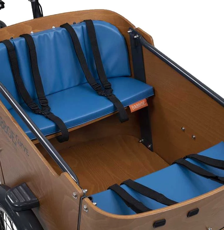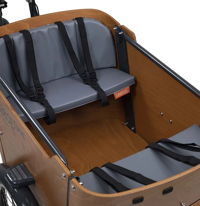 Avec le set de coussins Babboe, vous transformez la banquette de votre vélo cargo électrique Babboe Curve en un siège confortable. Ainsi, votre enfant ne voyage pas seulement en toute sécurité, mais aussi confortablement dans la caisse de transport. La livraison comprend 2 coussins d’assise pour les bancs sur le guidon et à l’avant ainsi qu’un coussin pour le dos. Les coussins se fixent facilement aux bancs à l’aide d’une fermeture velcro. Au total, il est ainsi possible d’emmener jusqu’à 4 enfants à partir de 18 mois.