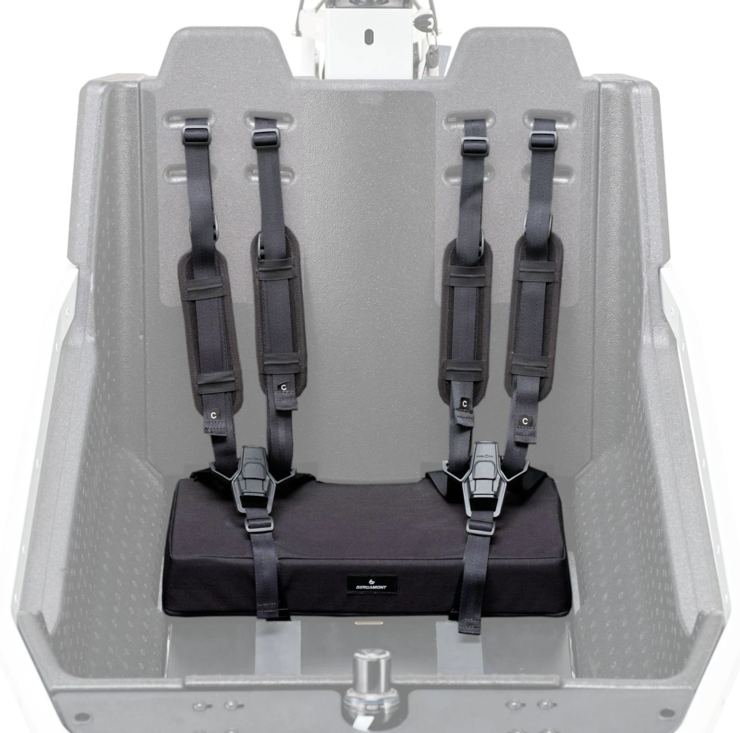Avec le set de coussins de siège Bergamont E-Cargoville LJ EPP, vous transformez la caisse de transport de votre vélo cargo électrique Bergamont en un siège confortable. Que ce soit sur le chemin de la crèche ou en balade le week-end. Le set de coussins d’assise garantit à vos enfants un trajet agréable et sûr. La livraison comprend 1 coussin d’assise sur lequel deux enfants peuvent s’asseoir. Il est fixé dans la caisse de transport à l’aide de bandes velcro. Il comprend également 2 systèmes de ceinture. Ceux-ci sont fixés au dossier de la caisse. Les sangles peuvent être placées à deux hauteurs différentes, en fonction de la taille de l’enfant. Le set est uniquement compatible avec le vélo cargo électrique Bergamont E-Cargoville LJ à partir de l’année modèle 2020 avec une surface de chargement de 70cm et une Caisse de transport LJ EPP montée.