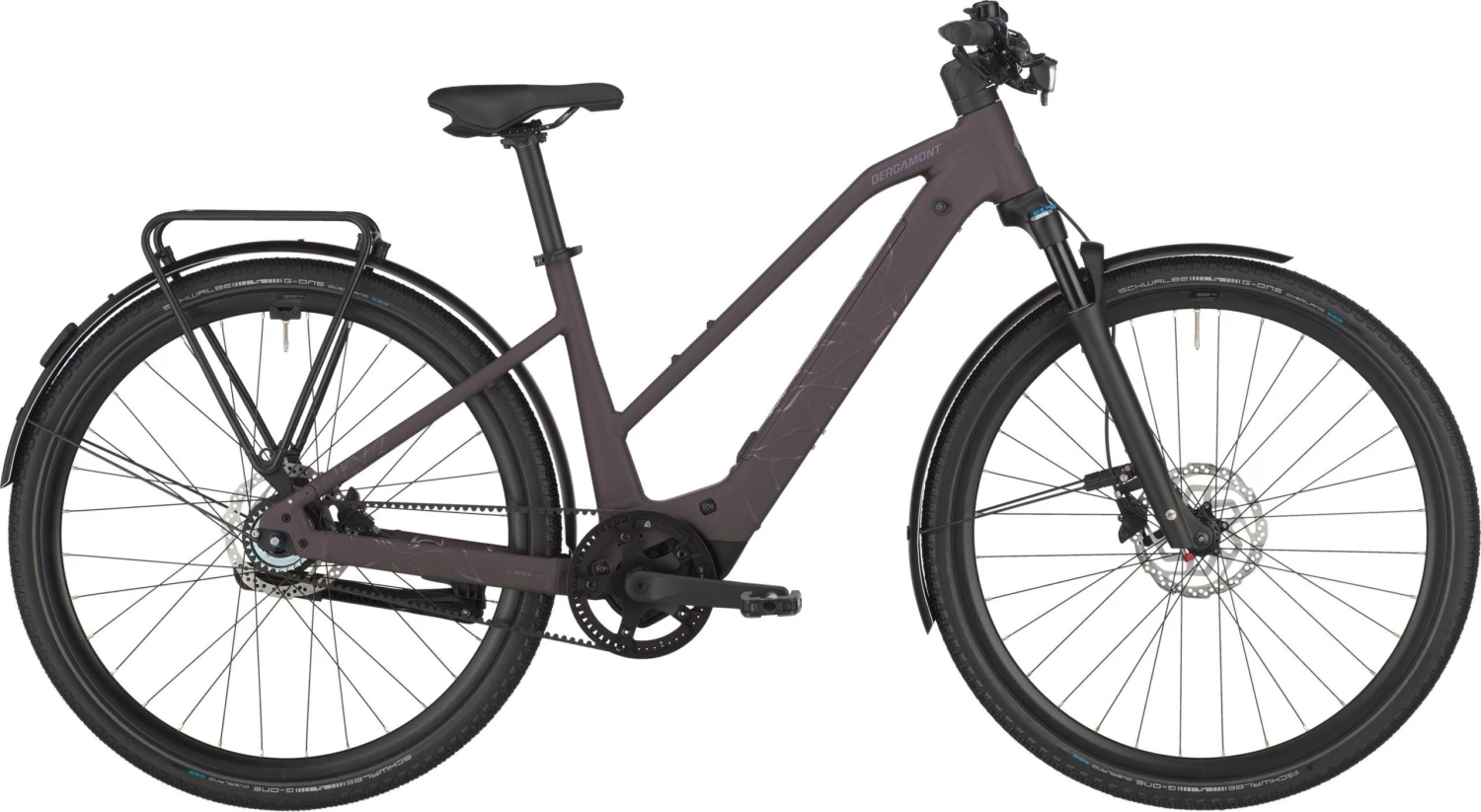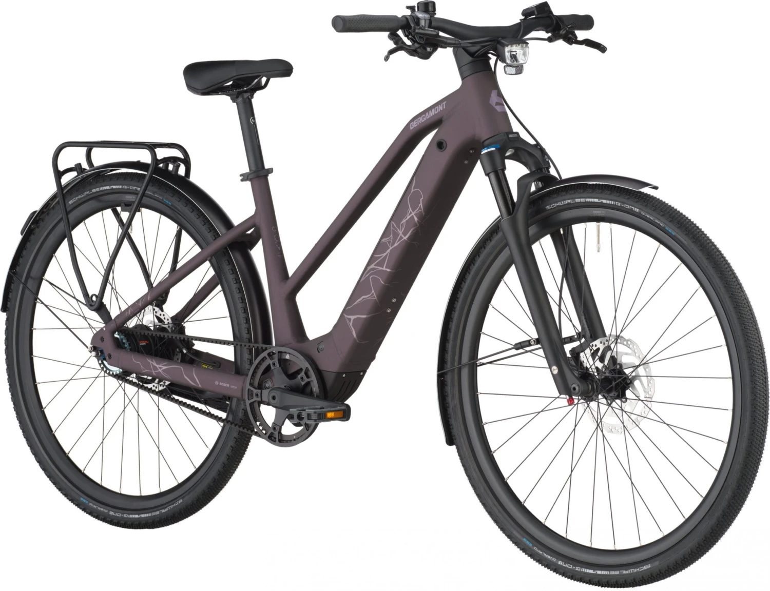 Année modèle: 2026 Type de vélo électrique: Femme VTT électrique, VTC électriques, Vélo de ville électrique Capacité de la batterie: 400 Wh – 499 Wh Système d’entraînement: Moteur Bosch Dérailleur/type de transmission: Moyeu à vitesses intégrées – courroie Moteur Bosch: Bosch Performance Line SX à partir de 2024 Smart System Cadre: 28″, ultra lite AL-6061 tubing Batterie: Bosch CompactTube, 36 V Li Ion, 400 Wh Pneus: Schwalbe G-One Overland 365, Performance, RaceGuard, refl ective stripe, 50-622 Selle: Syncros Capilano Trekking Mousse à mémoire de forme Porte-bagages: Racktime / BGM Allroad carrier, système Snapit 2.0 Poids: 21,8 kg Coloris: MATT DUSKY PURPLE Suspension avant: Suntour NRX32-E-Air LOR DS, 75 mm, axe de 15×100 mm Ecran: Bosch Purion 200 Garde-boue: Curana C-Lite, avec tiges en acier inoxydable Eclairage arrière: Supernova, LED Eclairage avant: B&M Briq-S, 60 Lux LED Guidon: Syncros Urban Combo, largeur : 680 mm Poids total autorisé: 130 kg Cassette: Gates CDC, 26t Chaîne: Gates CDC Carbon Drive Belt, piste centrale Moteur: Bosch Performance Line SX, 250 W, 36 V, max. 25 km/h Frein: Shimano BL-MT200, Shimano SM-RT10, 180 mm