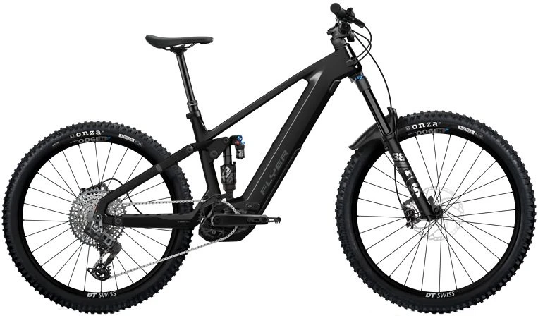 Année modèle: 2026 Type de vélo électrique: VTTAE léger, VTTAE tout-suspendu, VTT électrique Système d’entraînement: Moteur Bosch Fabricant: Flyer Capacité de la batterie: 800 Wh – 899 Wh Dérailleur/type de transmission: Dérailleur – chaîne Nombre de vitesses: 12-vitesses Position de la batterie: Batterie Intube / intégrée Moteur Bosch: Bosch Performance Line CX à partir de 2025 Smart System Fourche: Fox 38 Float Performance E-Optimized 180mm | 15 × 110mm Batterie: Bosch PowerTube 800 | 800Wh, 22.2Ah, 36V Dérailleur: Sram GX Eagle Transmission | 12 vitesses, 10- 52 t, dérailleur Pneus: Avant : Onza Aquila GRC 29 × 2.5 (63 – 622) | Arrière : Onza Aquila GRC 27.5 × 2.5 (63 – 584) Freins: Shimano XT BR-M8120 & BL-M8100 | 4 pistons Selle: Fizik Aidon Tige de selle: X-Fusion Manic Dropper Post | 34.9mm Poids: sans batterie : env. 20,1 kg | avec batterie : env. 24 kg Article: Flyer Uproc EVO:X 8.50 – 2025 Coloris: Noir perle brillant Potence: Satori Ursa, 35 × 35mm, 0°. Compatibilité: Application Bosch eBike Flow Amortisseur: Fox Float X2 Performance | 205 × 65mm Référence du fabricant: 175022 Garde-boue: Fox Mud Guard Materiau: Carbone Assistance: jusqu’à 25 km/h Moteur: Bosch eBike Smart System Performance Line CX Niveaux d’assistance: ECO | SPORT | EMTB | TURBO Eclairage arrière: FLYER RIL-33 Moyeu avant: Formula DC-711, 32 h Moyeu arrière: Formula EHL-148M, 32 h Caractéristiques de sécurité: Protection contre le vol : GPS « ConnectModule » avec fonction d’alarme et de suivi Guidon: FLYER Alliage | 800mm, 8°, 35mm Poids total autorisé: 140 kg Chargeur: Bosch eBike chargeur standard 4A Batterie additionnelle: Bosch PowerMore 250Wh (non inclus dans la livraison !) Taille: S/M, L, XL, XXL Collier de guidon: 31,8 mm EAN: 10314-001 : 8720602321694 | 10314-002 : 8720602316713 | 10314-003 : 8720602316720 | 10314-004 : 8720602321700 Unité de commande: Bosch System Controller & Mini Remote Bosch E-Bike System: Bosch eBike Smart System