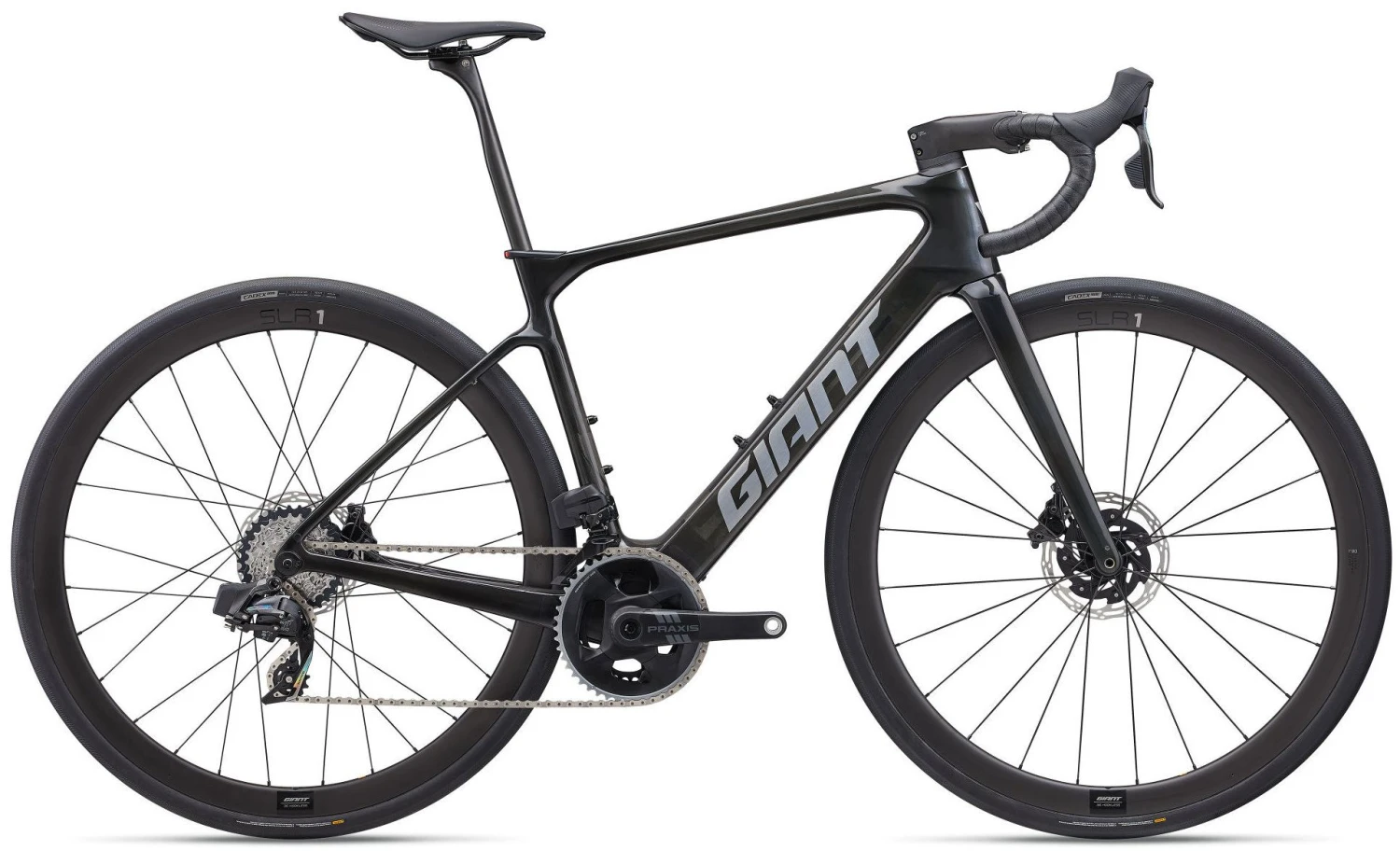 Année modèle: 2025 Type de vélo électrique: Velos Gravel électrique, Vélo de course électrique Forme du cadre: Homme Capacité de la batterie: 400 Wh – 499 Wh Système d’entraînement: Moteur Giant Moteur Giant SyncDrive: Giant SyncDrive Move Plus Cadre: Cadre Advanced Carbon, 12×145 mm Max. Garde au sol des pneus : 38mm Fourche: Fourche Advanced entièrement en carbone, pivot de fourche OD Aero, 12×100 mm Batterie: Giant EnergyPak 400Wh EnergyPak Plus Range Extender compatible EnergyPak Plus Pneus: CADEX Classics, 700x32c, Tubeless Ready, 170 TPI livraison sans chambre à air Freins: Sram Force AXS HRD, 160mm Selle: GIANT Fleet SL Tige de selle: GIANT Contact SL D-Fuse carbone Potence: GIANT Contact SLR Aerolight Ecran: SG écran compatible, ANT+ écran compatible jantes: GIANT SLR 1 Disc Carbon, Tubeless Ready, 36 mm Moteur: SyncDrive Move Plus, moteur au moyeu, 75Nm Guidon: GIANT Contact SLR D-Fuse carbone Manivelle: Pratique carbone, plateaux vélo SRAM X-SYNC 46/33T Cassette: SRAM Force, 10-33 dents Dérailleur: Sram Force AXS Moyeu: GIANT SLR 1 Disc / SyncDrive Plus Unité de commande: Giant RideControl GO + SRAM Blips