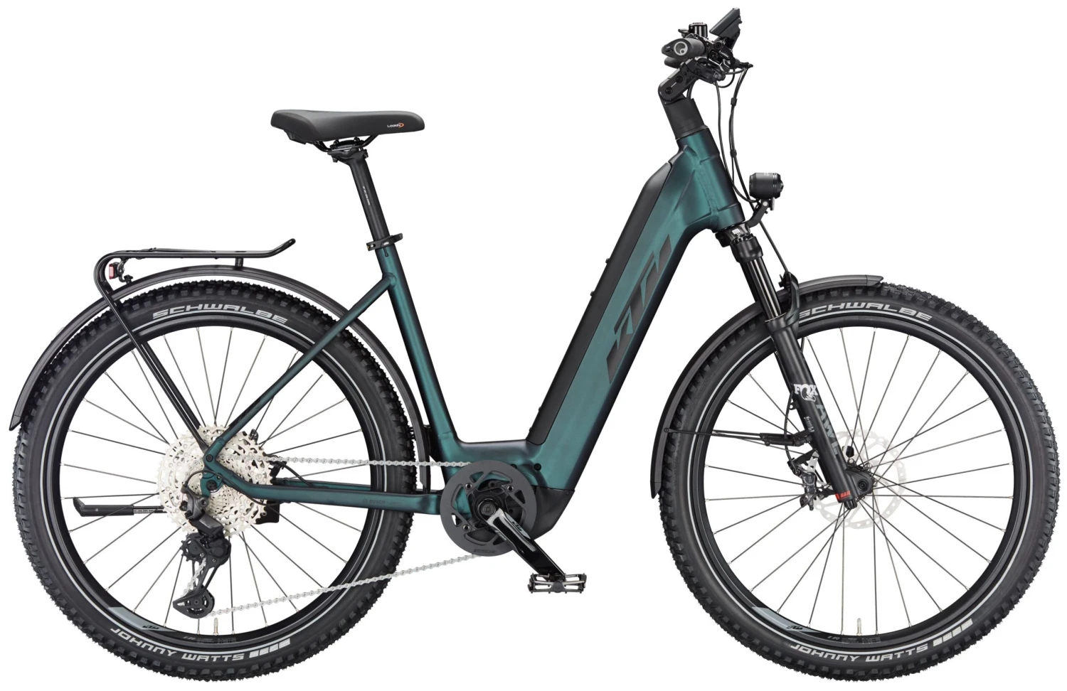 Avec son cadre bas, sa fourche suspendue Fox et ses pneus SUV, le KTM Macina Aera 771 LFC 2024 allie confort et tout-terrain. Il réunit les avantages d’un VTT à la commodité d’un vélo de ville. Grâce à la fourche suspendue pneumatique avec débattement de 100 mm, aux pneus profilés Schwalbe Johnny Watts et au système d’éclairage Litmove, le KTM Macina Aera 771 LFC 2024 a l’allure d’un SUV, aussi à l’aise en ville qu’à la campagne.