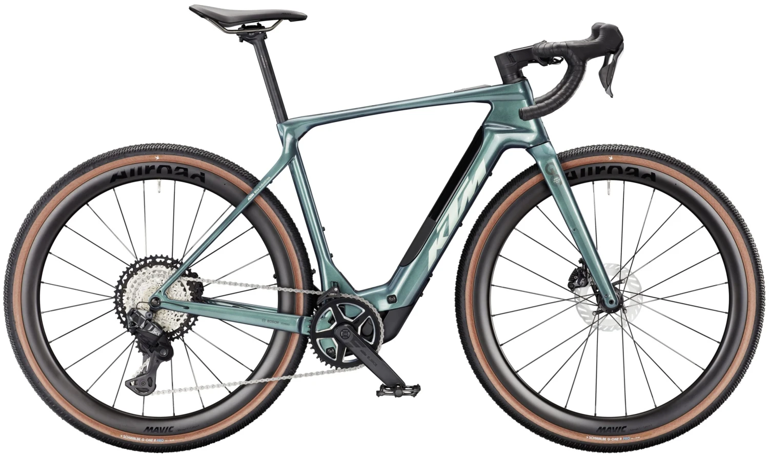 Année modèle: 2026 Type de vélo électrique: Velos Gravel électrique Capacité de la batterie: 400 Wh – 499 Wh Système d’entraînement: Moteur Bosch Fabricant: KTM Dérailleur/type de transmission: Dérailleur – chaîne Moteur Bosch: Bosch Performance Line SX à partir de 2024 Smart System Position de la batterie: Batterie Intube / intégrée Option batterie: Range Extender ready Cadre: Macina Gravelator Prem.Carbon UDH CPT400 Bosch BDU31/R4310 Fourche: X-Strada Gravel Perf. carbone w/mount F16 Batterie: Bosch CompactTUBE 400Wh Pneus: Avant : Schwalbe G-One R PRO 45-622 | Arrière : Schwalbe G-One R PRO 45-622 Selle: Fizik Terra Argo X3 Tige de selle: KTM TEAM II 27.2/350 Article: KTM Macina Gravelator SX Prime – 2026 Coloris: Royal Teal (Argent + Noir) Potence: KTM Line +20° ICR Roues: Avant : Mavic Allroad S Carbon 28 CL 100/12 622x25TSS | Arrière : Mavic Allroad S Carbon 28 CL 142/12 622x30TSS MS Plateau: KTM aluminium 42T Direct Mount Collier de selle: KTM seatclamp R43X0 Poignées: KTM tape Moteur: Bosch PERFORMANCE SX BDU3144 Jeu de direction: Acros AICR interne 1.1/8″-1.5″ angle lim Pedales: KTM Team cross alloy ballfree Guidon: KTM TEAM Gravel 16° : le vélo de l’équipe Manivelle: KTM E-RACE ISIS 170mm 02 Cassette: Shimano Deore XT M8100-12 / 10-51 Dérailleur: Shimano Deore XT Di2 M8260-12 SGS shad+ Chaîne: Shimano M8100-12 Levier de vitesse: Shimano GRX RX825 / RX820 2-pistons Protection de la chaîne: Horn Catena 22 44T Chargeur: Bosch COMPACT Chargeur 2A Disque de frein: Avant : Shimano MT800 CL 160 freeza | Arrière : Shimano MT800 CL 160 freeza Unité de commande: Bosch System Controller & Mini Remote Frein: Shimano MT402 (3-F) / MT410 2-pistons