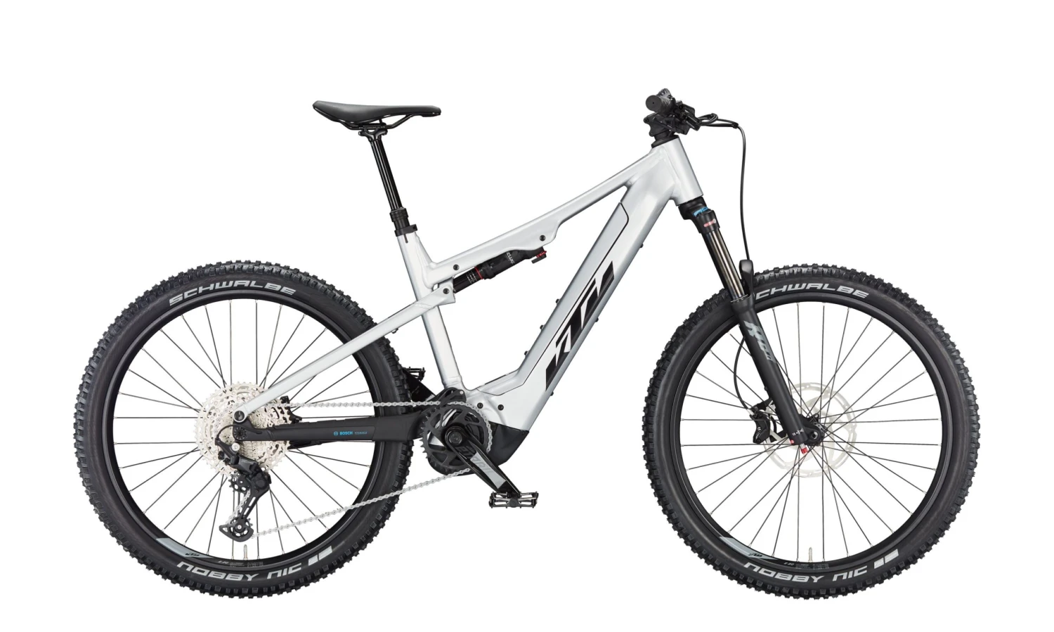 Année modèle: 2024 Type de vélo électrique: VTTAE tout-suspendu, VTT électrique Forme du cadre: Homme Système d’entraînement: Moteur Bosch Fabricant: KTM Capacité de la batterie: 700 Wh – 799 Wh Dérailleur/type de transmission: Dérailleur – chaîne Moteur Bosch: Bosch Performance Line CX 2022 – 2025 Smart System Position de la batterie: Batterie Intube / intégrée Cadre: Macina Lycan 27.5″ Alloy 6061 SLL-E 140mm PT750 Bosch Gen.4 / M-2296 Fourche: Suntour XCR 34 Air 27.5″ LOR 140mm 15×110 taper Batterie: Bosch PowerTube 750 Wh Smart System horizontal Pneus: Schwalbe Nobby Nic Perf. Folding 65-584 Selle: KTM Line Sport Tige de selle: KTM Comp dropper internal Article: KTM Macina Lycan 772 2024 Coloris: Starlight Silver (black+blue) Potence: KTM Team Trail35 Roues: avant: KTM Line – Shimano MT410B CL 32H 110-15TA Ambrosio E30 Trail 32H 584×30 dents C DT Champion 2.0 black | arrière: KTM Line – Shimano MT400B CL 32H 148-12TA Ambrosio E30 Trail 32H 584×30 dents C DT Alpine II 2.34 black Amortisseur: RockShox Deluxe Select+ 230×62.5 Débattement: 140 mm Poignées: KTM Comp Lock Moteur: Bosch Performance CX Gen.4 Smart System – 85 Nm Jeu de direction: Acros AICR internal 1.1/8″-1.5″ angle limit Pedales: Pédales VTT flat VPE-527 alloy Taille de la roue: 27,5″ Guidon: KTM Comp Trail35 rizer15 760mm Poids total autorisé: 146 kg Manivelle: KTM E-TRAIL ISIS 170mm Q16 Cassette: Shimano Deore M5100-11 / 11-51 Dérailleur: Shimano Deore M5100-11 SGS shadow+ Chaîne: KMC e11 Sport EPT e-bike Levier de vitesse: Shimano Deore M5100-11 Chargeur: Chargeur Standard Bosch Smart System – 4A Disque de frein: Tektro TR-45 2.3mm CL 203 / 180 Unité de commande: Bosch LED Remote Frein: Tektro HD-M535 4-pistons GPS: Non – Bosch ConnectModule Ready