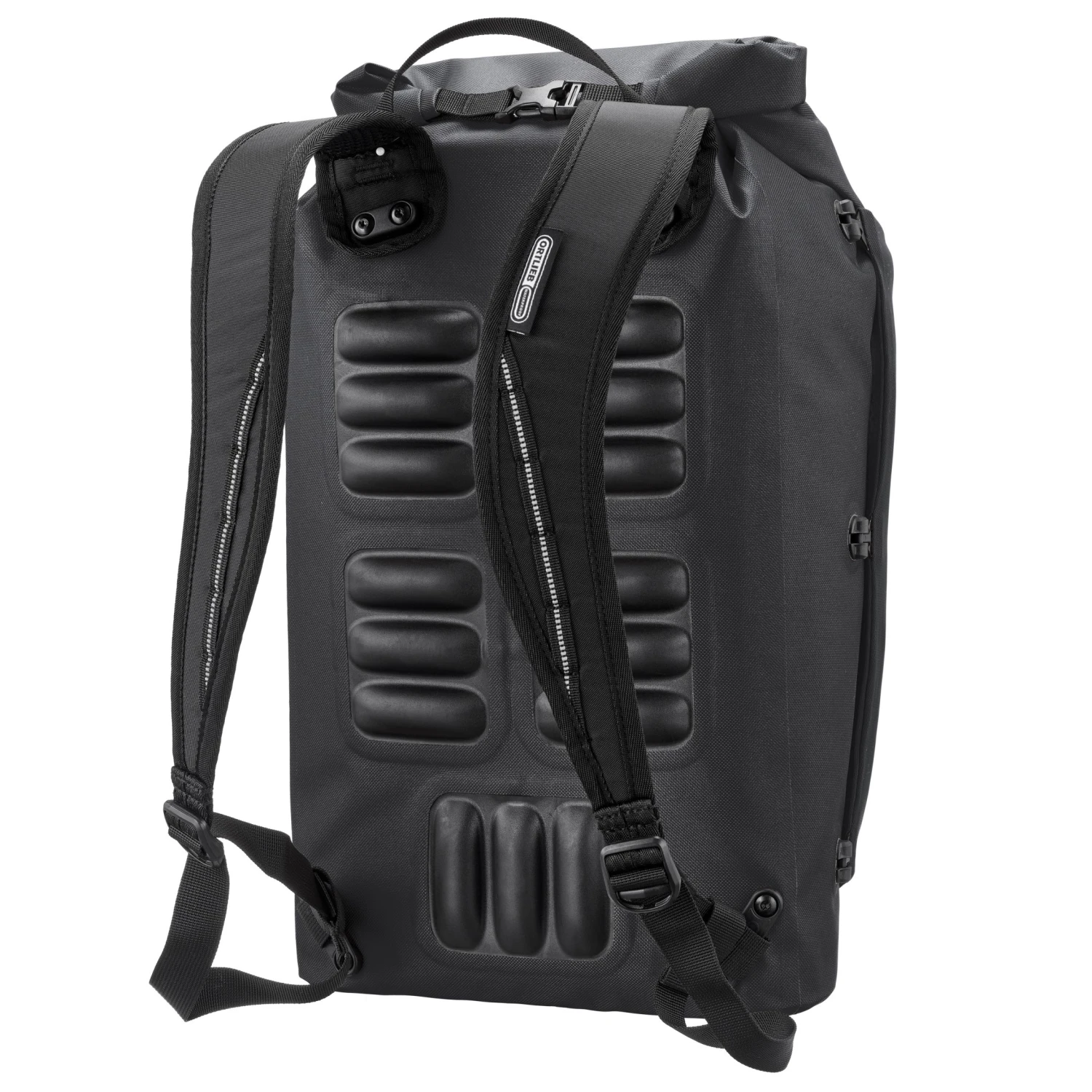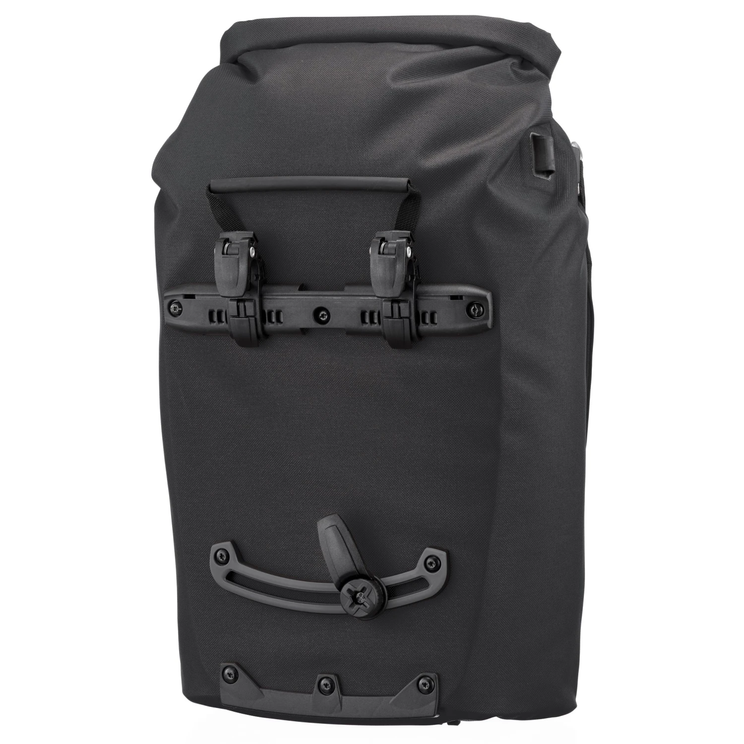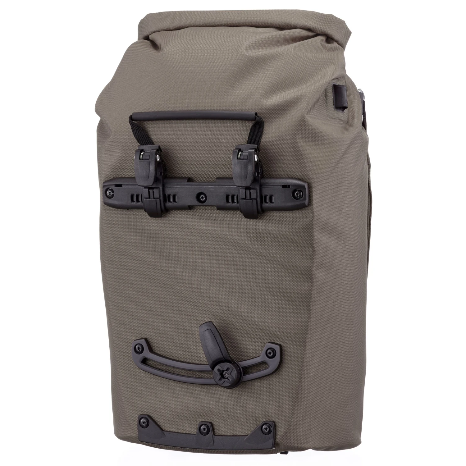 Ortlieb Vario Lite 22 litres est un hybride pratique qui s’utilise idéalement au quotidien. Fixé en toute sécurité sur le porte-bagages arrière grâce au système Quick-Lock 2.1, le Vario Lite peut être utilisé confortablement comme sacoche de vélo. Et une fois arrivé à destination, il se transforme en sac à dos en un tour de main. C’est possible grâce au rabat réversible en tissu Powernet. Celui-ci sert de protection pour le côté de la solution 2en1 que vous n’utilisez pas. Ainsi, le système Quick-Lock est toujours bien rangé pendant l’utilisation du sac à dos et les bretelles pendant l’utilisation de la sacoche. Le rabat en Powernet se fixe à l’aide d’un petit crochet sur le côté de la sacoche. Avec ses 22 litres de volume, le Vario Lite d’Ortlieb offre en outre suffisamment de place pour vos ustensiles. Outre le grand compartiment principal, il dispose d’un compartiment pour ordinateur portable et d’une poche extérieure plate intégrée dans le rabat Powernet. Le matériau est composé d’un tissu en nylon moyennement lourd avec un revêtement PU sur une face. Cet hybride 2en1 est ainsi parfaitement protégé contre la poussière et les projections d’eau.