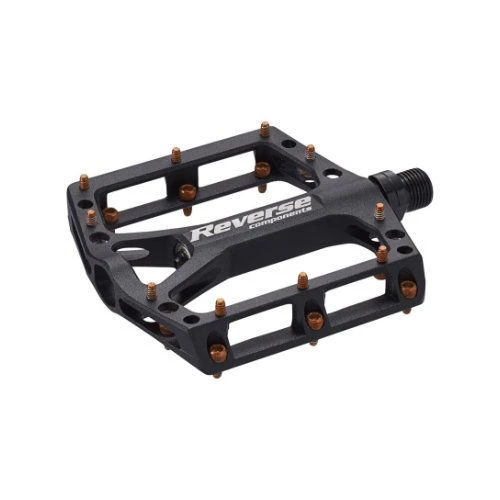 Les roulements industriels montés sur les pédales Reverse Black One amélioreront leur durée de vie. Reverse a opté pour des roulements un peu plus durs afin d’éviter que les pédales ne tournent. Lors de sauts ou de virages serrés sans contact avec la pédale, vous retrouverez ainsi toujours la bonne position. Les pins colorés en aluminium peuvent être échangés à tout moment ou remplacés par des pins de rechange en acier Reverse.