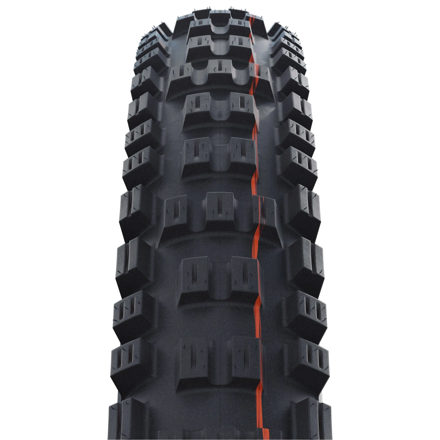 La carcasse Super Gravity du Pneu Schwalbe Eddy Current est pratiquement indestructible. La construction extrêmement solide des quatre couches de la carcasse, le tissu Snake Skin et l’apex modifié, protègent efficacement le pneu contre les coupures et les déchirures. Enfin, la membrane Turn-Up rigidifie les flancs tout en conservant une certaine souplesse de la bande de roulement.