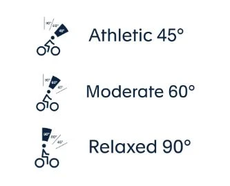 Choisissez la bonne position d’assise entre 45° (Athletic), 60° (Moderate) et 90° (Relaxed) pour profiter de vos sorties sans douleur !