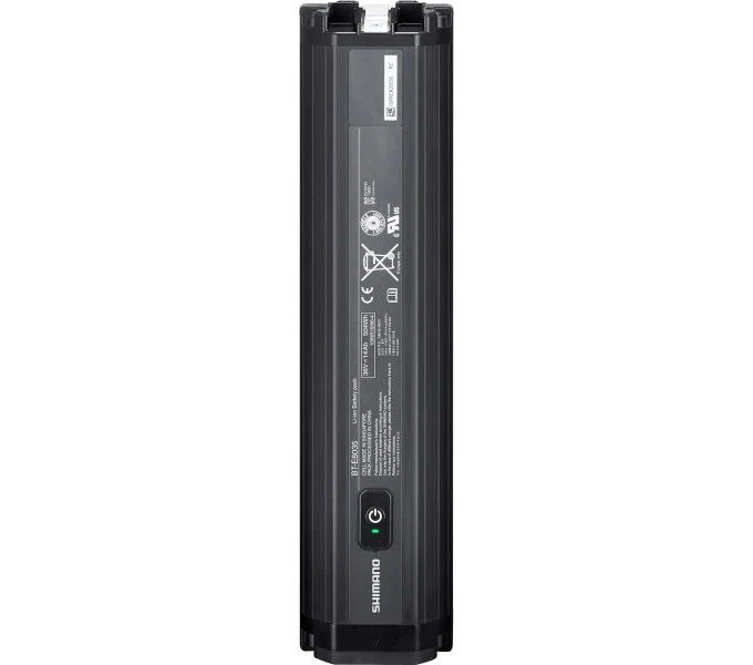 Poids : 2900 g Capacité de la batterie: 500 Wh et plus Système Shimano: Shimano Steps E7000 (VTTAE), Shimano Steps E8000 (VTTAE) Système d’entraînement: Moteur Shimano Fabricant: Shimano Position de la batterie: Batterie Intube / intégrée Article: Shimano Steps – Batterie intégrée BT-E8035, 504 Wh (36 V, 14 Ah) Contenu de la livraison: 1 x batterie Coloris: noir Dimensions: Longueur : env. 35cm Largeur: env. 8,5cm Hauteur: env. 6,5cm Cycles de charge: 14 Ah = après 1000 cycles de charge, la capacité de recharge est encore de 60% des capacités initiales. Portée: 14 Ah = jusqu’à 100km dans des conditions optimales / dans le domaine du VTTAE Compatibilité: Séries E8000 Référence du fabricant: I-BTE8035E
